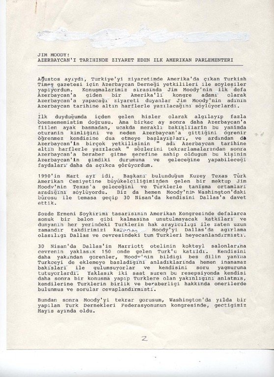 Aşağıdaki yazı Amerikan milletvekili Jim Moody ve kafilesini Azerbaycan ve Kırım'a götürüşüm ardından 1990 yılında daktilo ile yazılmıştır.